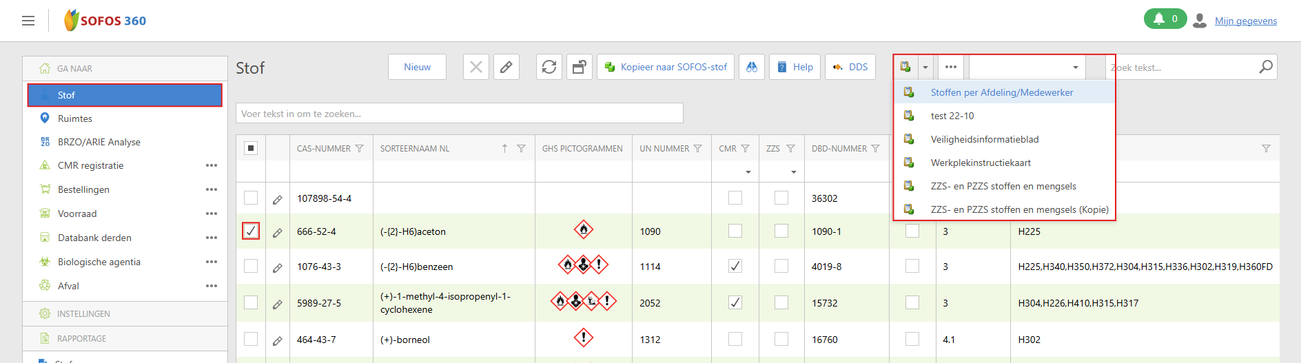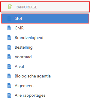 Ga naar module [Rapportage] -> [Stof].