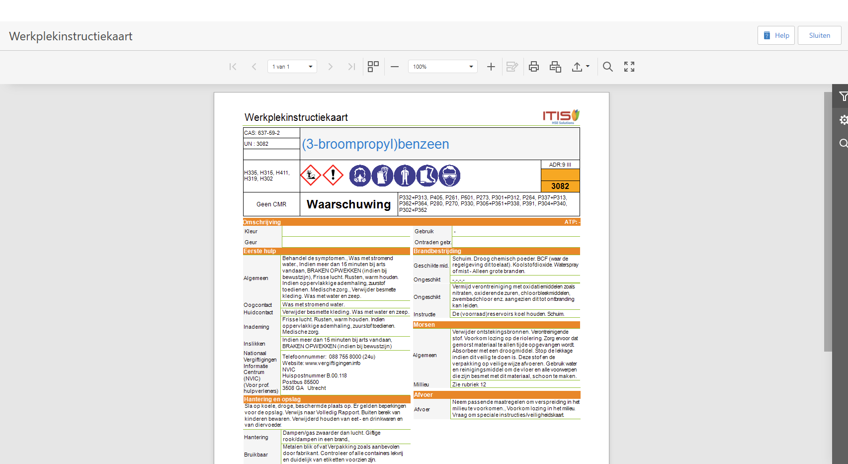 Let op: u kunt geen werkplekinstructiekaart of een veiligheidsinformatieblad genereren vanuit de module Rapportages. Dat kan alleen vanuit de module Stoffen, door een artikel aan te vinken en het rapport te laten genereren zoals bij het tabblad 'Uit de module Stoffen'.