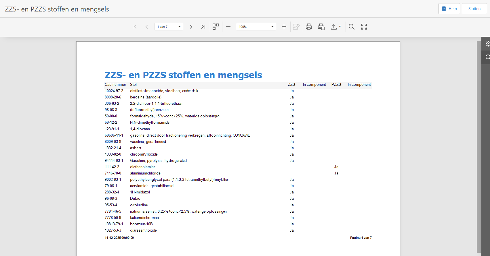 Een rapport van één of meerdere stoffen