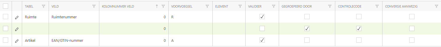 Any element in a scanner file that is not defined in the layout is interpreted as an action code and, if possible, linked to a SOFOS 360® action. A definition for such an action code is always required in a layout definition. Only the checkboxes "Control code" and "Grouped by" are checked.