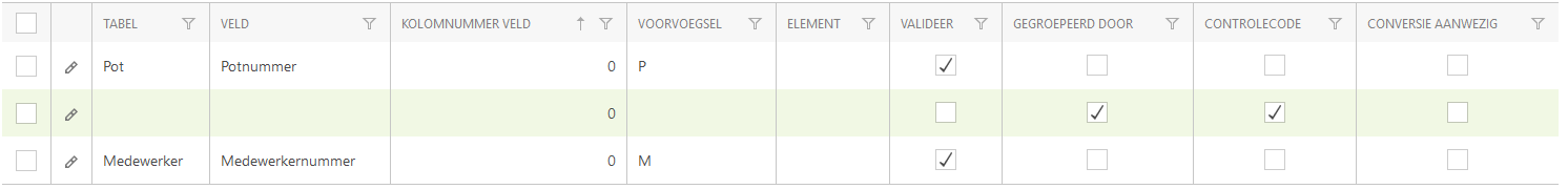 For instance, if you want to specify in the scanner file that there is a reference to a pot written as P<potnumber>,. You will choose 'BOPot' for the "Table" column. Next, in the "Field" field, select 'Pot number'. If there is a potential that the file contains data in several columns, specify the column number in the "Field Column Number" area. This step is only essential if you specify a separator in the "Layout rules" screen.