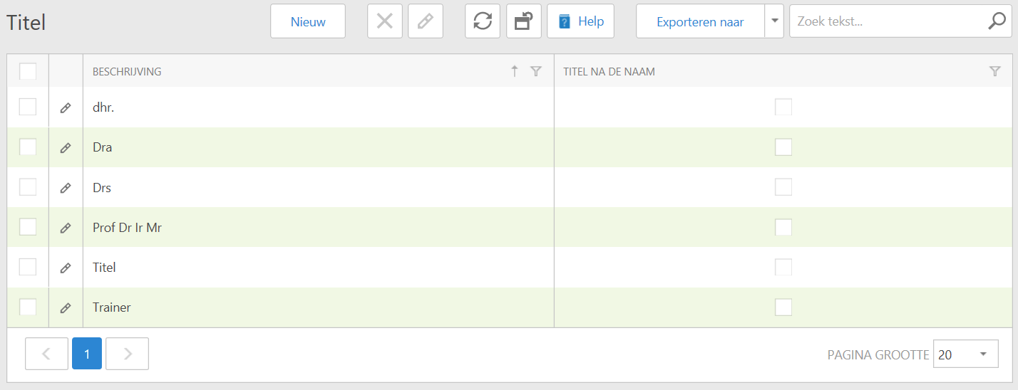 Here you can fill in the details and choose whether the title should come before or after the name. When you're done, click Save. You will return to the overview.