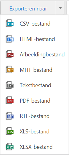 Click on the Export to button or make a choice with the arrow () on the right side. The difference: if you click the button, a *.csv file will be generated automatically (this choice is at the top). With the arrow you can choose more file formats. You confirm your choice from the list by clicking on it.