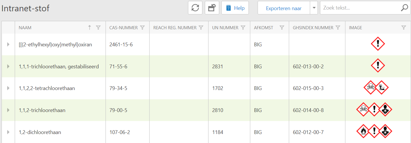 To see more information about a substance, click on the arrow () next to the substance in the left column.