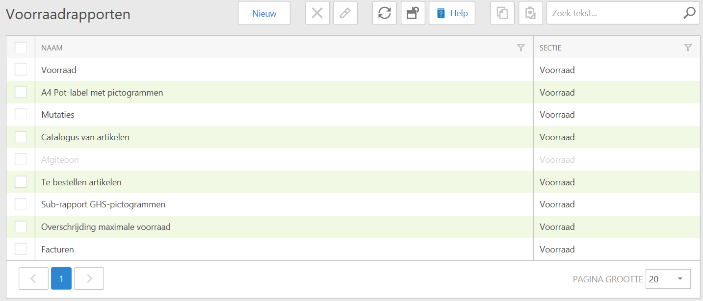 - In the menu on the left, go to Reporting > Stock. Here you will see the different reports you can choose. Click on the Invoices report. A new window will open.